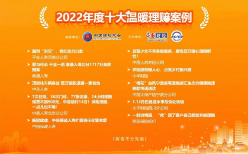 本次案例征集活動(dòng)共收集150個(gè)案例,超50家保險(xiǎn)機(jī)構(gòu)參與評選。通過參評資格初審、案例公開展示、網(wǎng)友點(diǎn)亮愛心、專家評審等一系列環(huán)節(jié),最終選出“2022年度十大溫暖理賠案例”。中英人壽的成功入圍,充分體現(xiàn)了公司“以客戶為中心”的服務(wù)理念。
