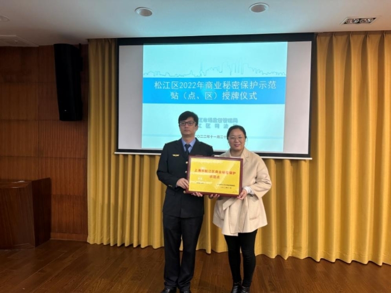 11月25日,松江區(qū)召開2022年度商業(yè)秘密示范站(點)、示范區(qū)授牌儀式,市市場監(jiān)管局反不正當競爭處處長史書祿,區(qū)市場監(jiān)管局黨組成員、副局長宗曄,區(qū)司法局副局長俞培剛出席會議。