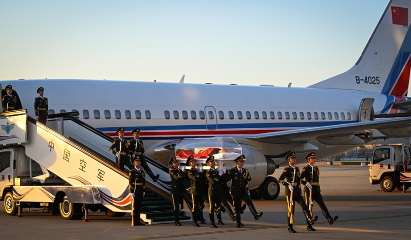 12月1日,江澤民同志的遺體從上海由專機(jī)敬移到達(dá)北京。新華社記者 陳鐘昊 攝