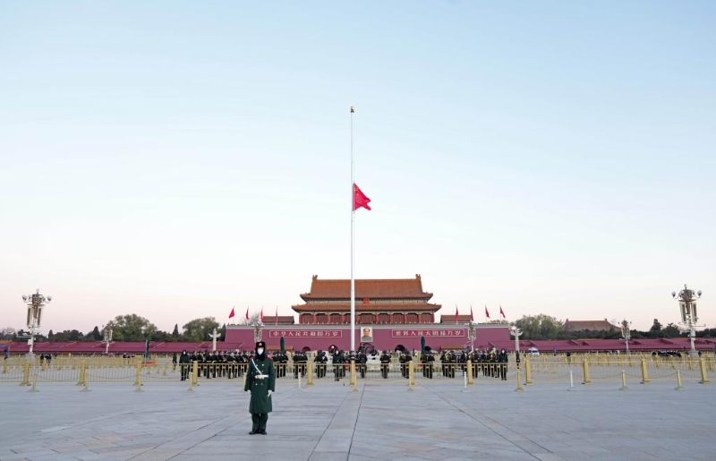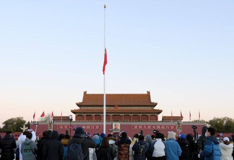 12月1日,北京天安門(mén)下半旗志哀,悼念江澤民同志逝世。新華社記者 鞠煥宗 攝