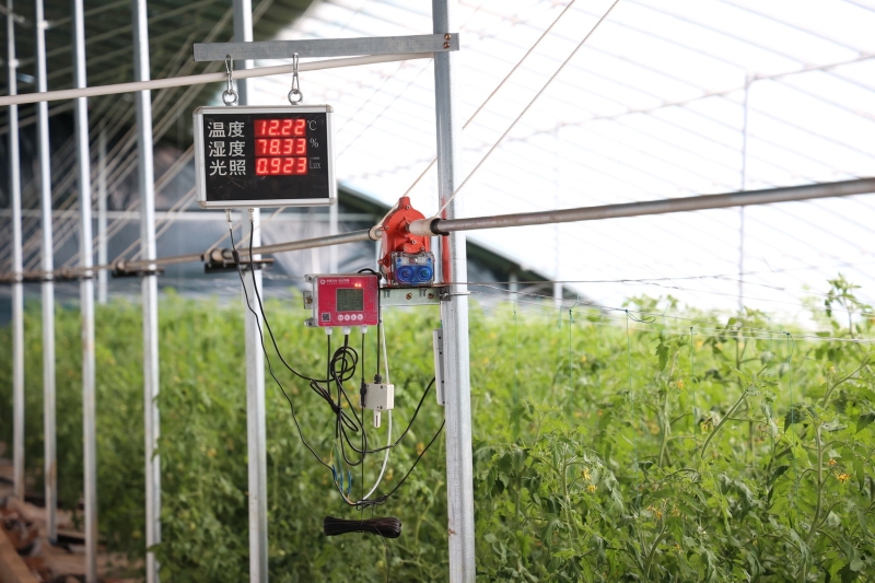 經(jīng)常跑園區(qū)的鄭孝恒對智能大棚里的溫濕控制系統(tǒng)和水肥一體化系統(tǒng)十分熟悉。朝著鄭孝恒手指的一塊液晶顯示屏看過去,上面實時顯示著大棚內(nèi)的溫度、濕度和光照等指標。
