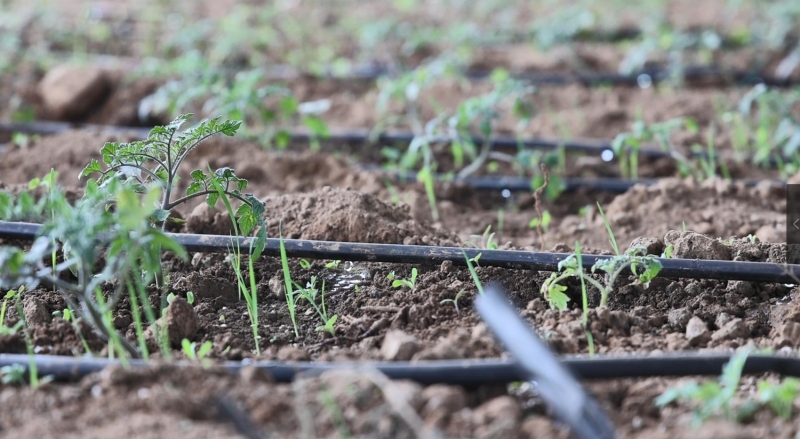 智能大棚內(nèi)的水肥一體化系統(tǒng)正在給番茄幼苗進行滴灌。 攝影 孫赤睿