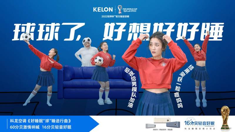 對于不少球迷來說,熬夜看球似乎已成為家常便飯,通常是晚上睡不著,白天醒不了。近日,科龍空調(diào)作為2022年卡塔爾世界杯官方指定空調(diào),立足球迷在世界杯期間熬夜觀賽導(dǎo)致的睡眠不足痛點(diǎn),抓住了大眾傳播心理,從球迷的視角帶入,以諧音梗球球體和產(chǎn)品“16分貝輕音好眠”功能利益點(diǎn)融合,結(jié)合大眾耳熟能詳?shù)腂GM“地獄中的奧菲歐”的元素,上線一首魔性洗腦歌曲《好睡眠“球”睡曲》,魔性的節(jié)奏讓無數(shù)年輕人“上頭”。