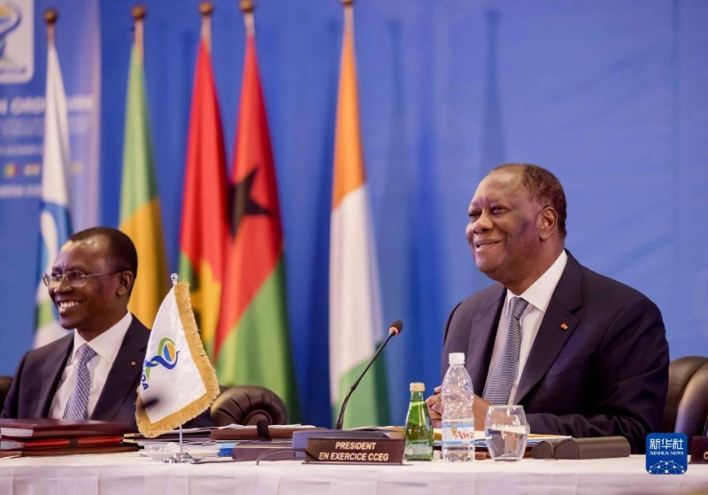 12月5日,在科特迪瓦經(jīng)濟(jì)首都阿比讓,科特迪瓦總統(tǒng)瓦塔拉(右)出席西非經(jīng)濟(jì)貨幣聯(lián)盟第23屆國家元首和政府首腦會(huì)議。