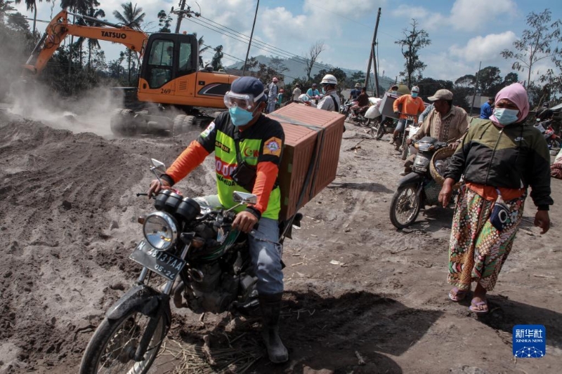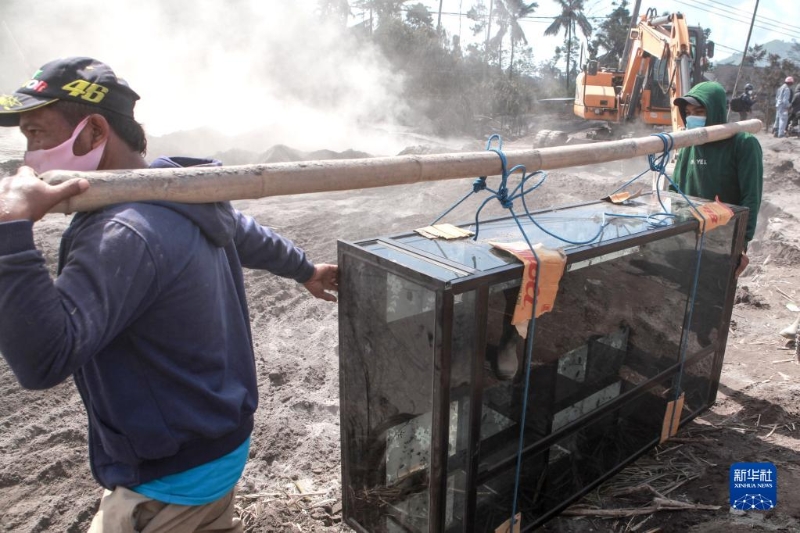 12月6日,在印度尼西亞東爪哇省盧馬姜縣松伯武盧村,人們攜帶物品撤離受火山噴發(fā)影響的區(qū)域。