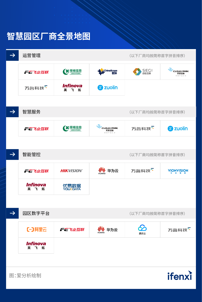 愛分析對本次智慧園區(qū)項(xiàng)目重點(diǎn)研究的特定市場分析如下。同時(shí),針對參與此次報(bào)告的部分代表廠商,愛分析撰寫了廠商能力評估。