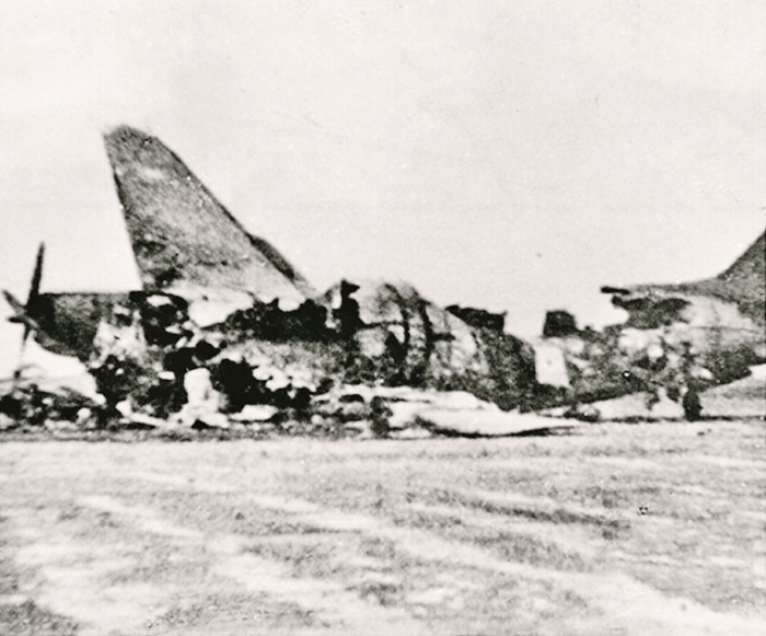 夜襲陽明堡戰(zhàn)斗中被炸毀的敵機。