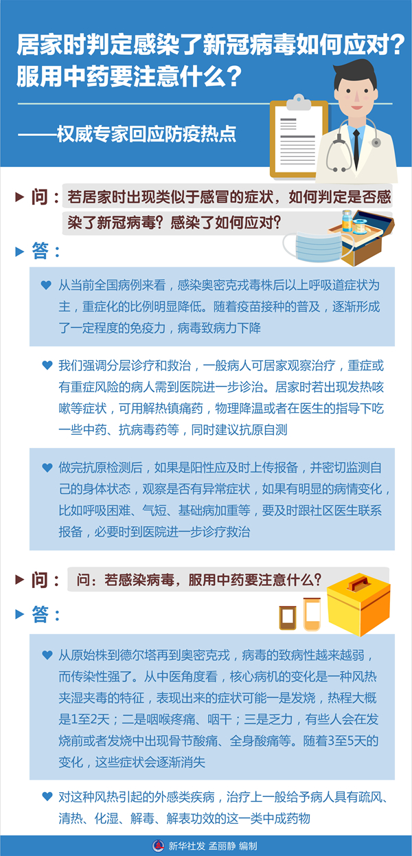 新華社北京12月7日電 題:居家時判定感染了新冠病毒如何應(yīng)對?服用中藥要注意什么?——權(quán)威專家回應(yīng)防疫熱點