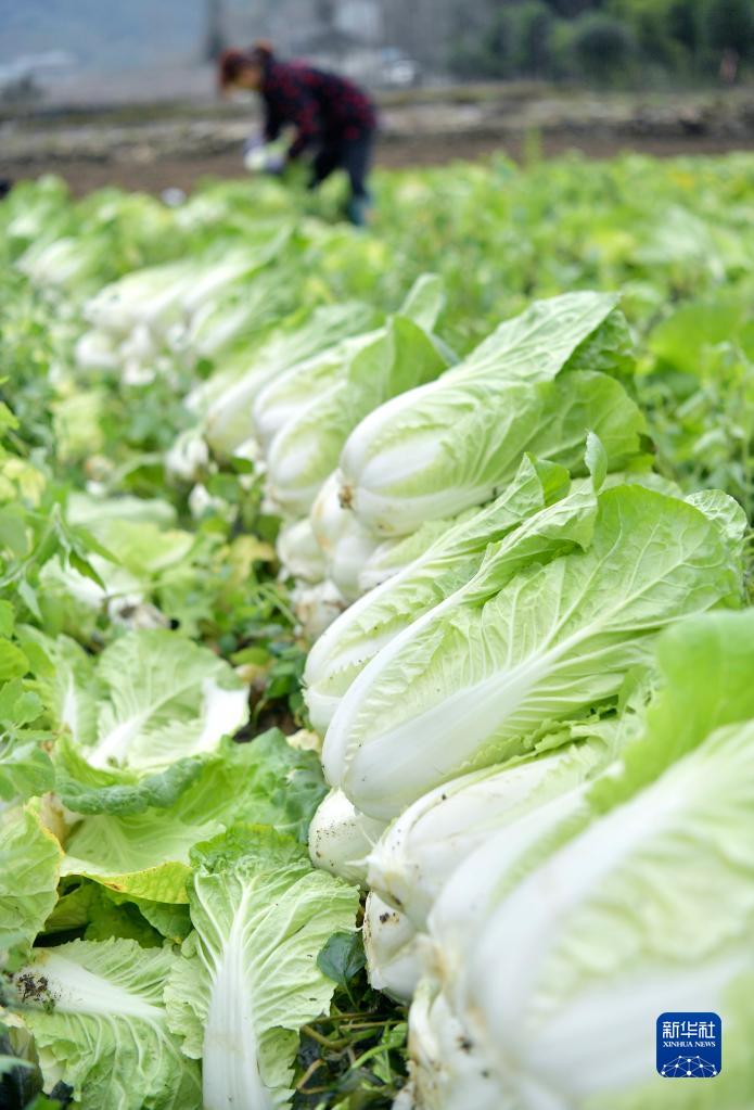 12月7日,湖北省宣恩縣曉關(guān)侗族鄉(xiāng)張官村蔬菜專業(yè)合作社社員在搶收大白菜。