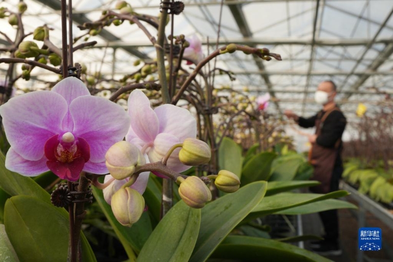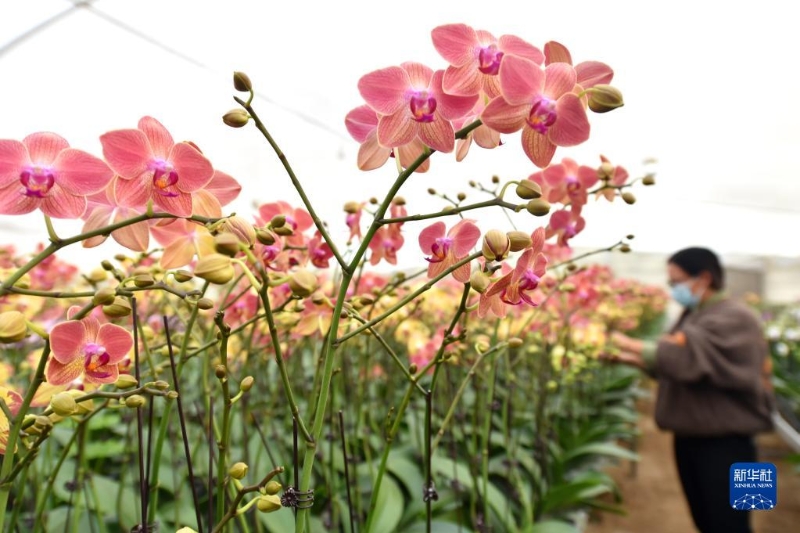 12月7日,河北省邢臺市內(nèi)丘縣一處農(nóng)業(yè)生態(tài)園的員工在溫室大棚里管護(hù)蝴蝶蘭。