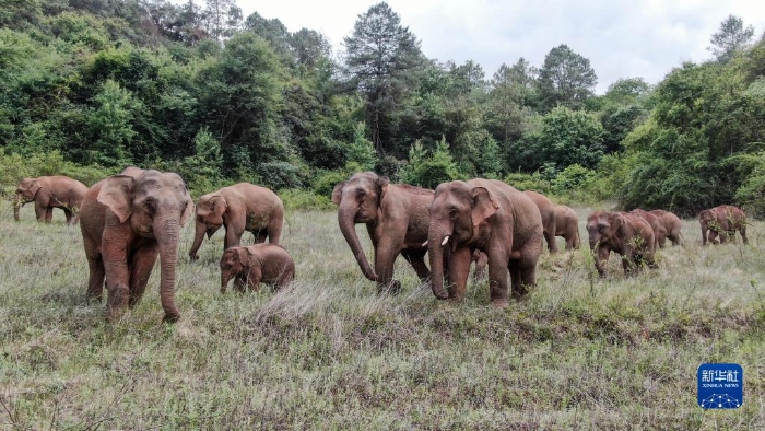 2021年6月3日在昆明市晉寧區(qū)雙河彝族鄉(xiāng)拍攝的野象(無人機照片)。新華社發(fā)