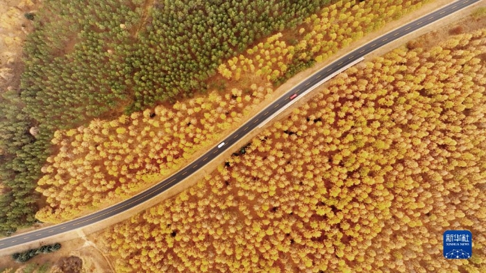 這是2022年10月2日拍攝的河北塞罕壩國家級自然保護區(qū)秋景(無人機照片)。新華社發(fā)(王龍 攝)