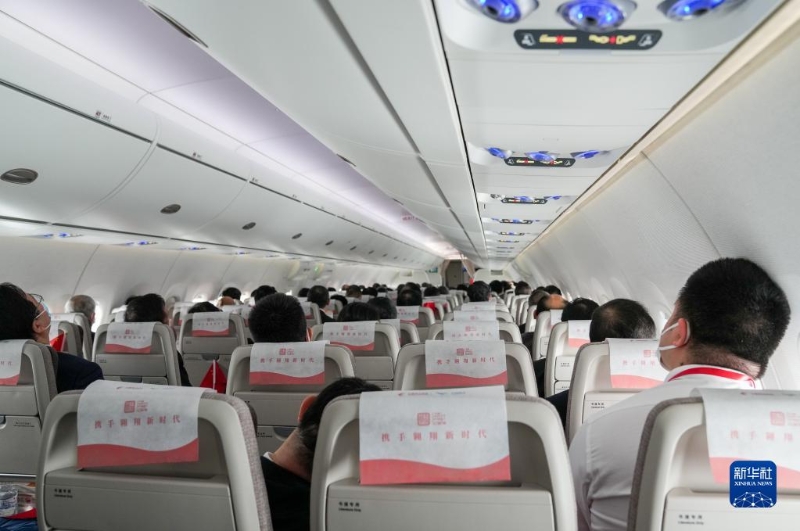 12月9日拍攝的國(guó)產(chǎn)大飛機(jī)C919機(jī)艙內(nèi)部。