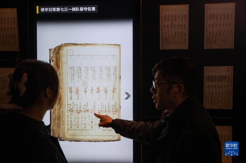 12月10日,在侵華日軍第七三一部隊罪證陳列館,工作人員在介紹新展出的《關(guān)東軍防疫給水部留守名簿》。新華社記者 張濤 攝