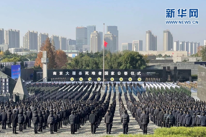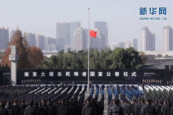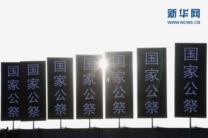 這是12月13日拍攝的南京大屠殺死難者國(guó)家公祭儀式現(xiàn)場(chǎng)。(新華社記者李博 攝)