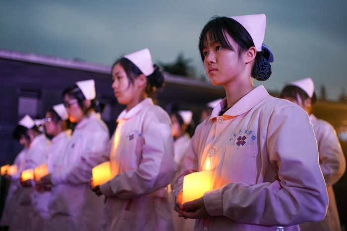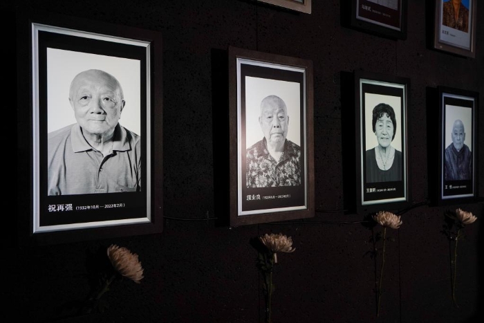 2022年4月13日,侵華日軍南京大屠殺遇難同胞紀念館為今年離世的大屠殺幸存者舉行“熄燈”悼念儀式。新華社記者 李博 攝