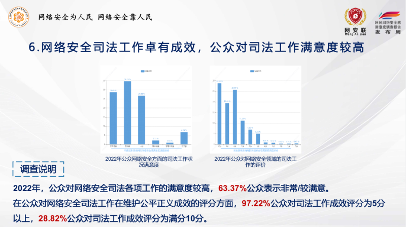 六、網(wǎng)絡(luò)安全司法工作卓有成效,公眾對(duì)司法工作滿意度較高