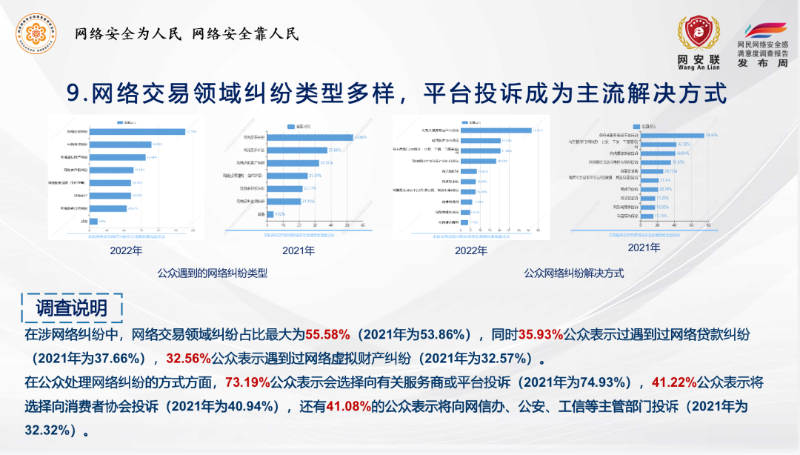 九、網(wǎng)絡(luò)交易領(lǐng)域糾紛類型多樣,平臺(tái)投訴成為主流解決方式