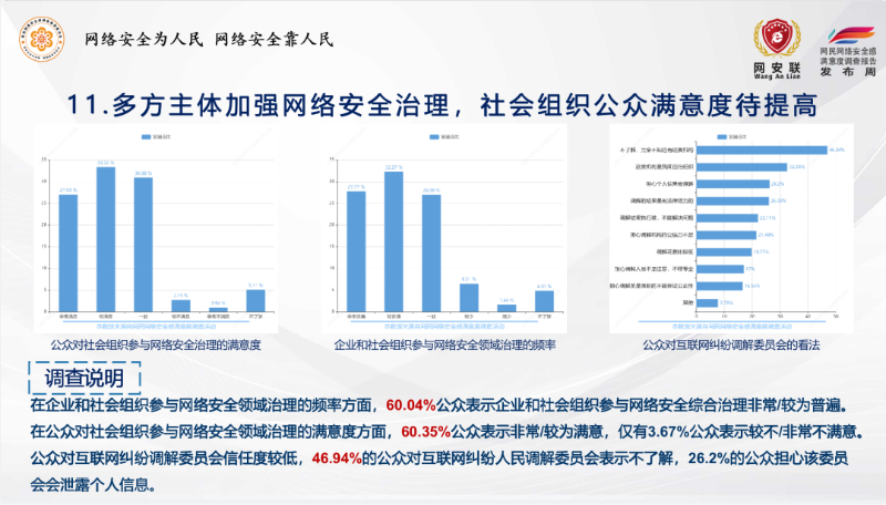 十一、多方主體加強(qiáng)網(wǎng)絡(luò)安全治理,社會(huì)組織公眾滿意度待提高