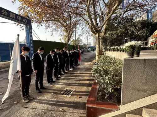 活動在莊嚴(yán)肅穆的氛圍中進行,上午10時,防空警報鳴響,全體參會人員立正默哀一分鐘。隨后,分公司開展“云”寄哀思活動,組織廣大黨員和職工通過登錄“國家公祭網(wǎng)”在線公祭,依次進行點燭祭奠同胞、獻花默哀追思、鳴鐘警示醒世、寄語和平祈愿等環(huán)節(jié)。水木秦淮項目黨員代表前往鼓樓區(qū)挹江門煤炭崗叢葬地紀(jì)念碑舉行悼念活動,紀(jì)念碑前,黨員代表共同追憶那一段困難深重的歷史,并向革命先烈默哀、三鞠躬致敬并敬獻鮮花。