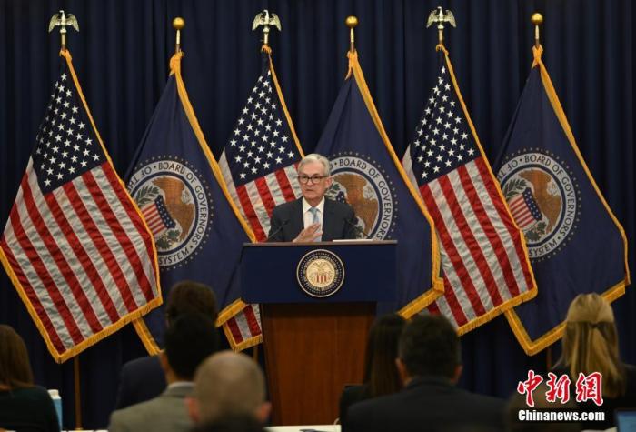 圖為美聯(lián)儲(chǔ)主席鮑威爾當(dāng)天在貨幣政策例會(huì)后出席記者會(huì)。 中新社記者 陳孟統(tǒng) 攝