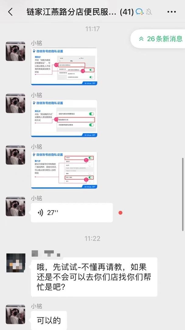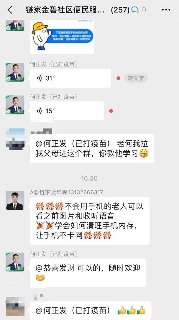 鏈家志愿者在微信群為老人答疑解惑