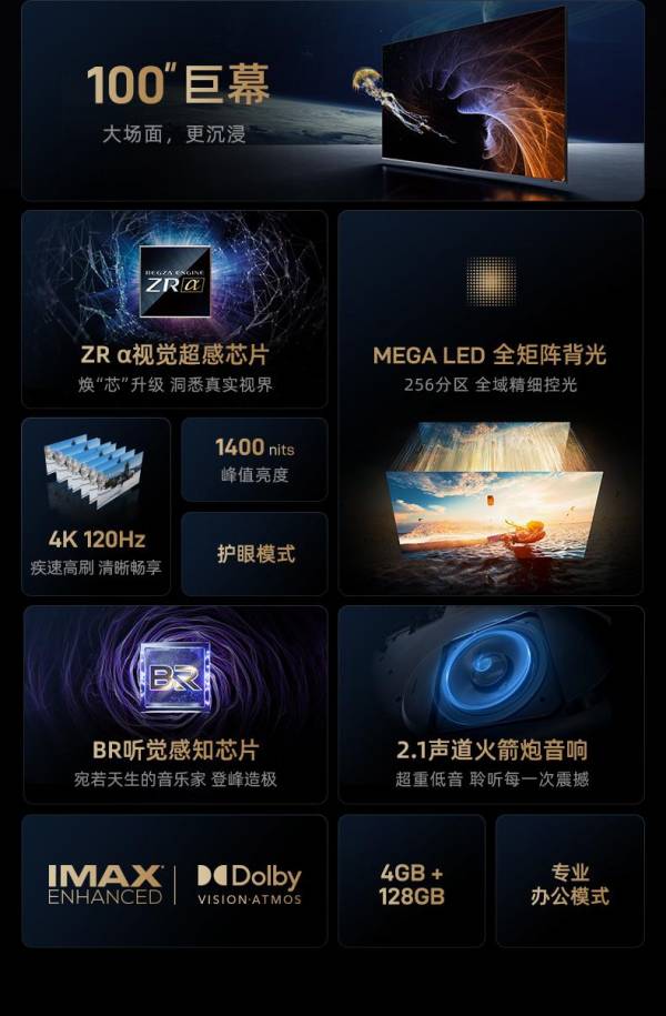 據(jù)悉,100吋Z870系列最大的亮點(diǎn)在于——煥“芯”升級(jí),稍早前東芝發(fā)布的MiniLED旗艦770系列首次搭載了ZR視覺睿智芯片,在Z870系列配置上,全新升級(jí)的ZRα視覺超感芯片,加上東芝在音質(zhì)的傳統(tǒng)優(yōu)勢(shì),旗艦配置拉滿,重新定義巨屏。