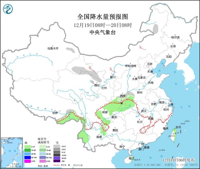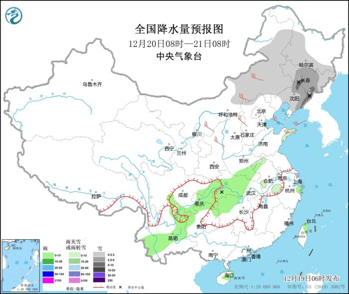 全國降水量預報圖(12月19日08時-20日08時)