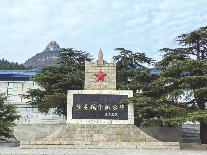 肥城烈士陵園位于山東省肥城市安臨站鎮(zhèn)東陸房村北的鳳凰山南麓,178位在陸房戰(zhàn)斗中犧牲的烈士長眠于此。矗立在陵園廣場中央的紀(jì)念碑高8.8米,碑體正面鐫刻著解放軍原總參謀長楊得志題寫的碑名——“陸房戰(zhàn)斗紀(jì)念碑”,左右兩面分別刻有“1939”。整個紀(jì)念碑碑身由雙曲線圍合而成,代表戰(zhàn)斗中運動戰(zhàn)和突圍戰(zhàn)兩個性質(zhì),碑身主體為一棵大樹托著花蕊造型,代表八路軍第一一五師擔(dān)負(fù)著由延安向山東抗日戰(zhàn)區(qū)傳播革命火種的任務(wù),碑體背面刻有《陸房戰(zhàn)斗五十周年立碑銘志》,全文如下(標(biāo)點為引者所加):
