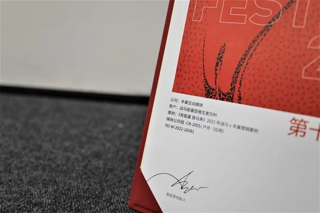 2022年11月,第十五屆金投賞商業(yè)創(chuàng)意獎(jiǎng)在上海圓滿落幕。作為亞洲規(guī)模最大的商業(yè)創(chuàng)意類獎(jiǎng)項(xiàng),本屆金投賞商業(yè)創(chuàng)意獎(jiǎng)(下稱“金投賞”)共收到超1100家參賽公司的3500余件作品,其中有704件作品、497家公司成功入圍。豐巢互動(dòng)媒體(下稱“豐巢互媒”)聯(lián)合戰(zhàn)馬能量型維生素飲料(下稱“戰(zhàn)馬”)的場(chǎng)景營(yíng)銷案例,首次參加便成功入圍決賽圈,獲得提名獎(jiǎng)。