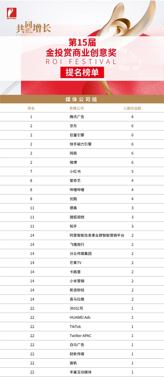 第十五屆金投賞商業(yè)創(chuàng)意獎(jiǎng)提名榜單