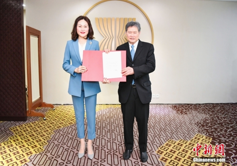 當(dāng)?shù)貢r間12月22日,新任中國駐東盟大使侯艷琪在雅加達(dá)向東盟秘書長林玉輝遞交任命書,雙方并進(jìn)行了親切友好交談。 中新社發(fā) 中國駐東盟使團 供圖
