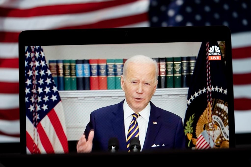 美國總統(tǒng)拜登3月8日宣布,美國將對俄實(shí)施能源禁運(yùn),停止從俄進(jìn)口石油、天然氣和煤炭。圖為當(dāng)天拍攝的拜登在華盛頓白宮發(fā)表講話的視頻畫面。新華社記者劉杰攝