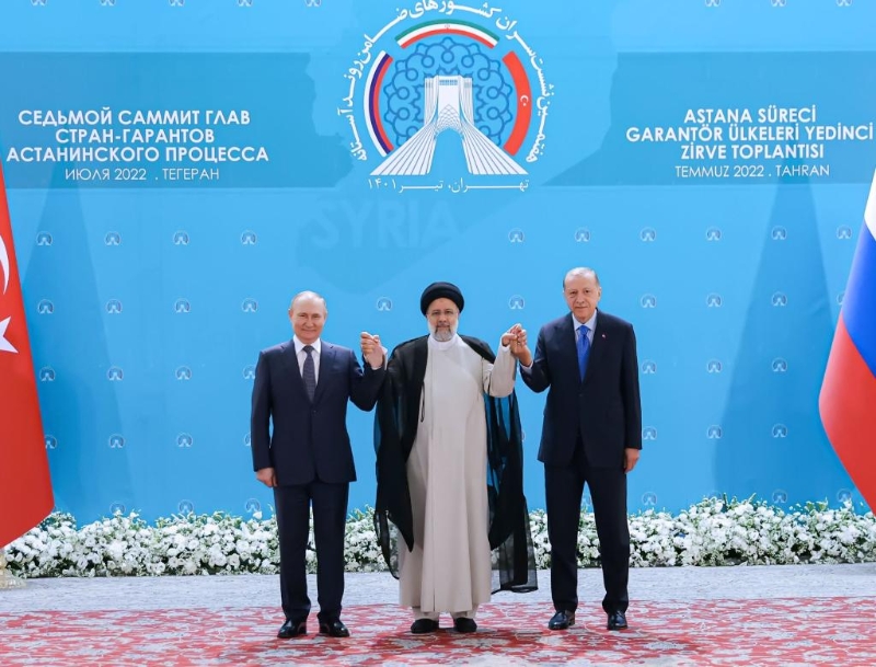 7月19日,在伊朗首都德黑蘭,伊朗總統(tǒng)萊希(中)、俄羅斯總統(tǒng)普京(左)和土耳其總統(tǒng)埃爾多安在舉行三方會(huì)談前合影。新華社發(fā)(伊朗總統(tǒng)網(wǎng)站供圖)
