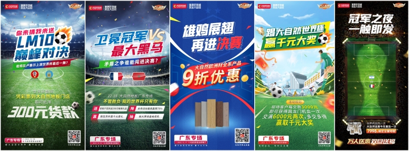值得一提的是,今年12月正值卡塔爾世界杯體育熱點(diǎn),大自然地板廣東專場活動借勢世界杯流量與熱點(diǎn)話題,與營銷政策花式結(jié)合實(shí)現(xiàn)強(qiáng)勢出圈。據(jù)悉,疫情解封后首場廣東大自然地板專場活動12月17日在總部展廳落地,現(xiàn)場以勁爆折扣和趣味世界杯游戲,點(diǎn)燃客戶的參與熱情,吸引了不少客戶紛紛下單。