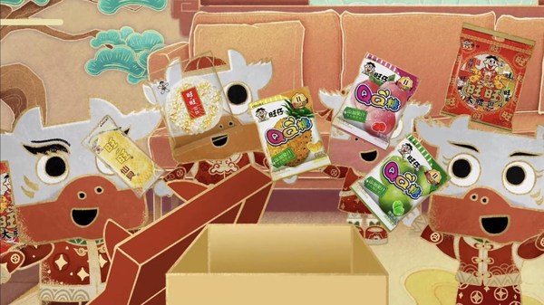 動畫視頻短片中,在歡快的鑼鼓聲中,顧家家居的吉祥物顧家牛與旺旺的卡通形象旺仔一起送出聯(lián)名好禮。本次聯(lián)名中,顧家家居和旺旺推出了三款聯(lián)名跨界設(shè)計(jì)產(chǎn)品,分別是以旺旺經(jīng)典產(chǎn)品仙貝、雪餅QQ糖為靈感,專門針對年輕人的家居需求設(shè)計(jì)的掀貝沙發(fā)椅、學(xué)餅桌和懶人神器QQ躺。