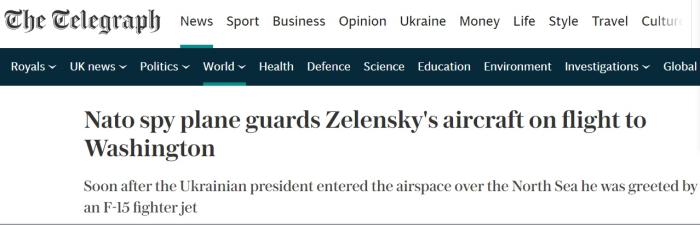 北約偵查機(jī)護(hù)送澤連斯基訪美。圖片來源:英國《每日電訊報(bào)》報(bào)道截圖