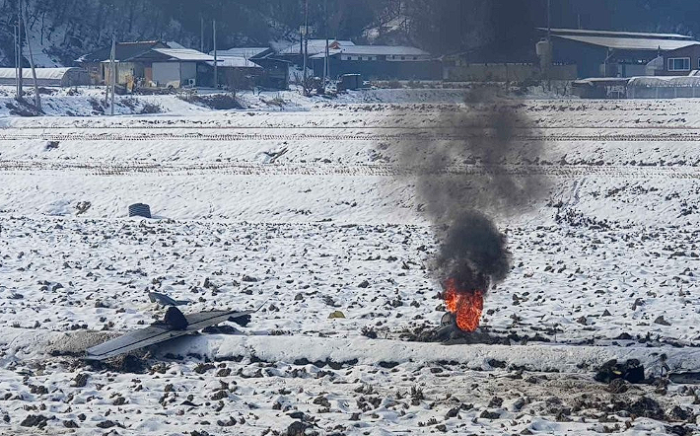 圖為墜機現(xiàn)場(韓聯(lián)社)