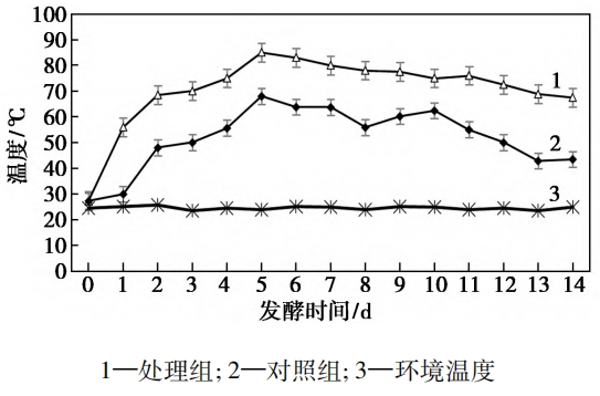 超高溫好氧堆肥技術(shù)相比于傳統(tǒng)的好氧堆肥具有發(fā)酵周期短、發(fā)酵溫度高的優(yōu)點(diǎn),同時(shí)可以在不依賴外源加熱的條件下,使發(fā)酵溫度超過(guò)80℃,抑制有害微生物生長(zhǎng)。