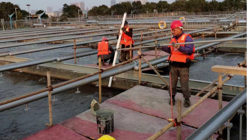 ▲孝昌市政水廠新增可提升曝氣裝置改造施工現(xiàn)場(chǎng)。