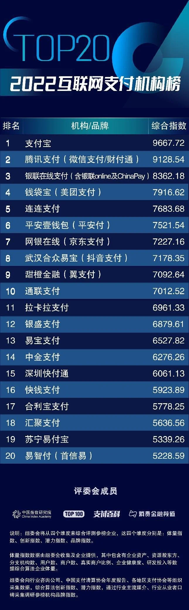 「2022互聯(lián)網(wǎng)支付機(jī)構(gòu)TOP20榜」