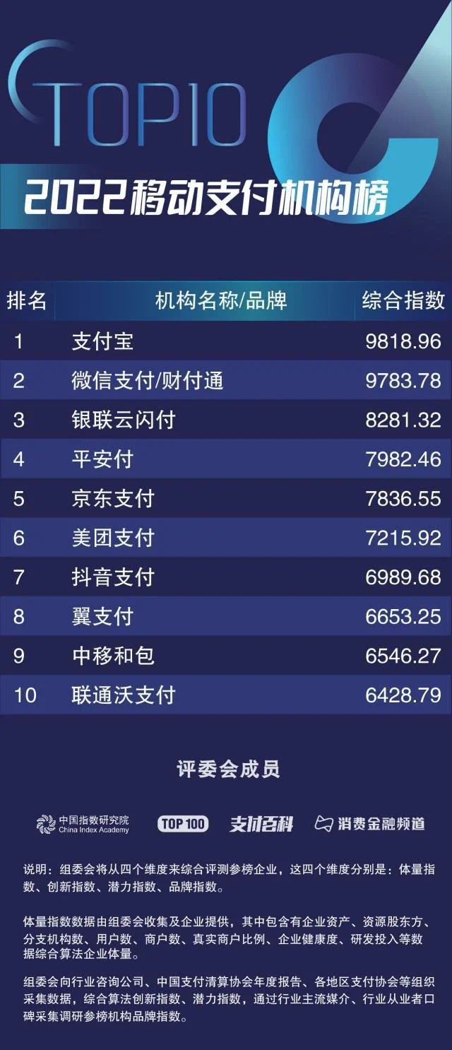 「2022移動(dòng)支付機(jī)構(gòu)TOP10榜」
