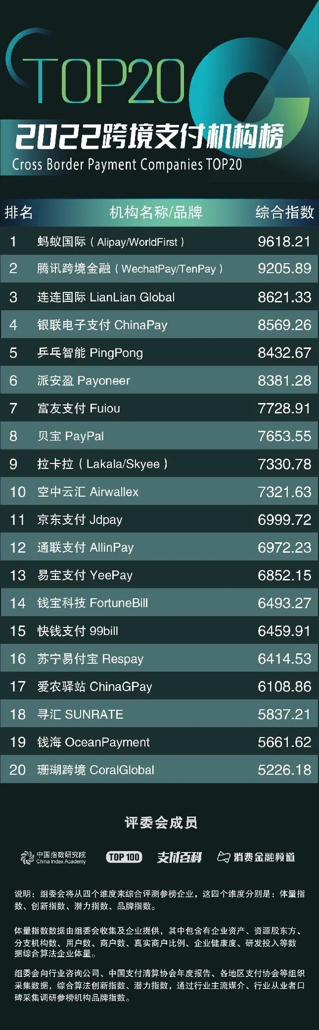 「2022跨境支付機(jī)構(gòu)TOP20榜」