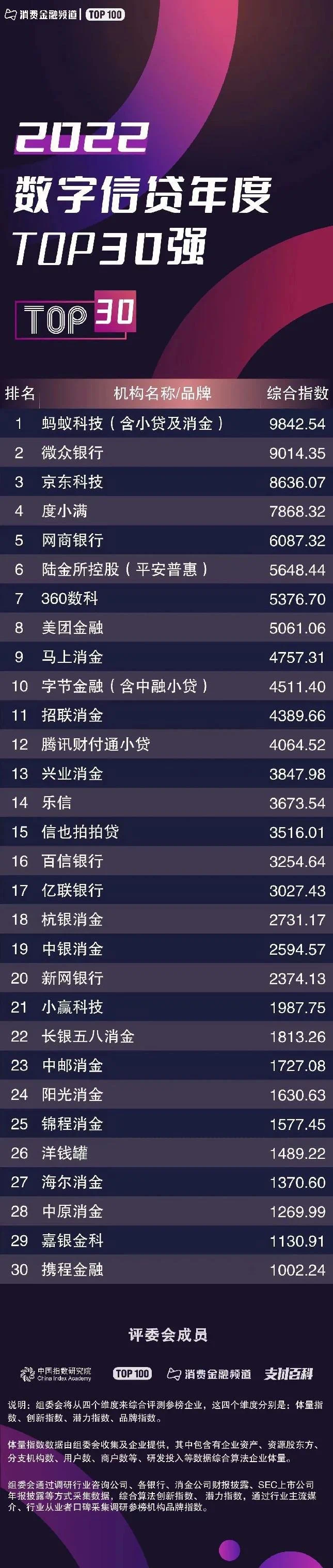 「2021年消費(fèi)金融機(jī)構(gòu)TOP30榜」