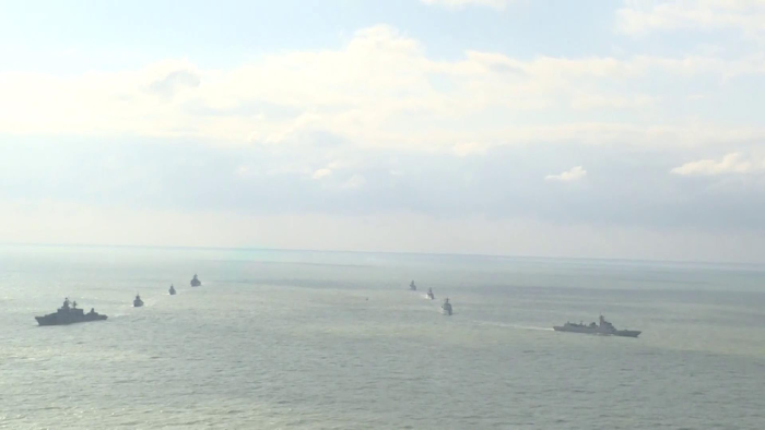 今天上午,中俄“海上聯(lián)合-2022”聯(lián)合軍事演習(xí)閉幕式及分航儀式在東海某海域舉行 ,中國海軍濟南艦和俄海軍“瓦良格”號導(dǎo)彈巡洋艦在各自駕駛室分別設(shè)立主會場,聯(lián)合編隊其余屬艦通過音頻形式同步參加了閉幕式。