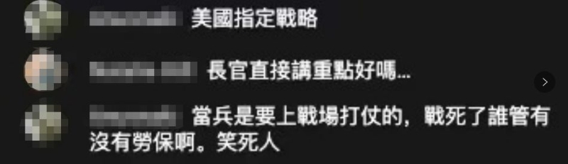 但是,臺灣的年輕人對于蔡英文的說辭似乎并不買賬。對于現(xiàn)有義務役期即將延長,不少青年都表示不能接受,在網(wǎng)絡上留言表示“不愿為民進黨打仗”“民進黨不倒,臺灣不會好”;也有網(wǎng)友寫道,“進去里面也是沒在干嘛,掃掃地、除除草”;還有人站在家長的立場表示“會擔心自己的小孩”;還有人留言批評,認為蔡英文是在“陷臺灣于戰(zhàn)爭邊緣”,表示“反對延長兵役期”,稱此舉是“美國指定戰(zhàn)略”。