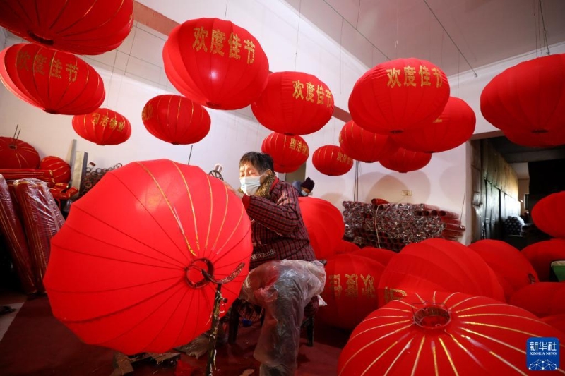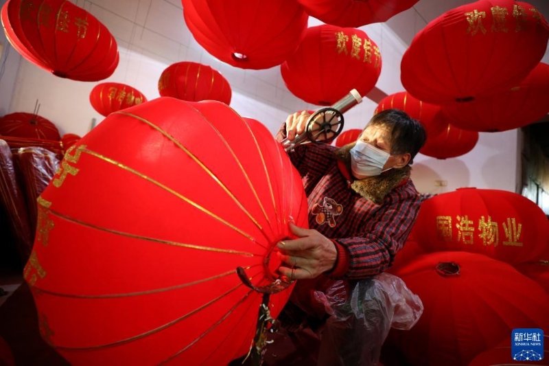 新年臨近,河南省焦作市溫縣北冷鄉(xiāng)許北張村燈籠作坊內一派忙碌景象,村民們加緊趕制大紅燈籠,供應節(jié)日市場。
