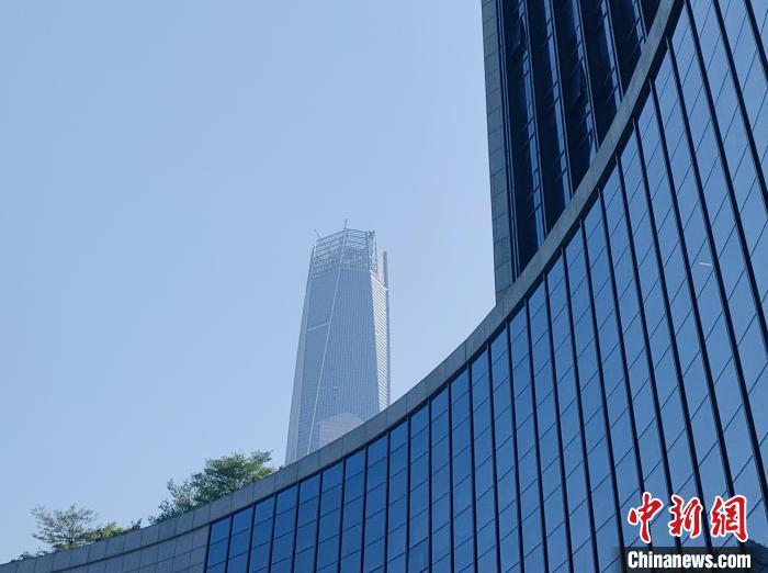 資料圖:藍天下,東莞市中心的高樓。 王堅 攝