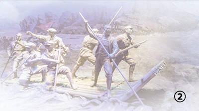 大連市關(guān)向應(yīng)紀(jì)念館里,紅軍長征搶渡金沙江的情景雕塑。宋 斌攝