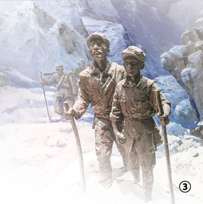 大連市關(guān)向應(yīng)紀(jì)念館里,紅軍長征爬雪山時的情景雕塑。宋 斌攝